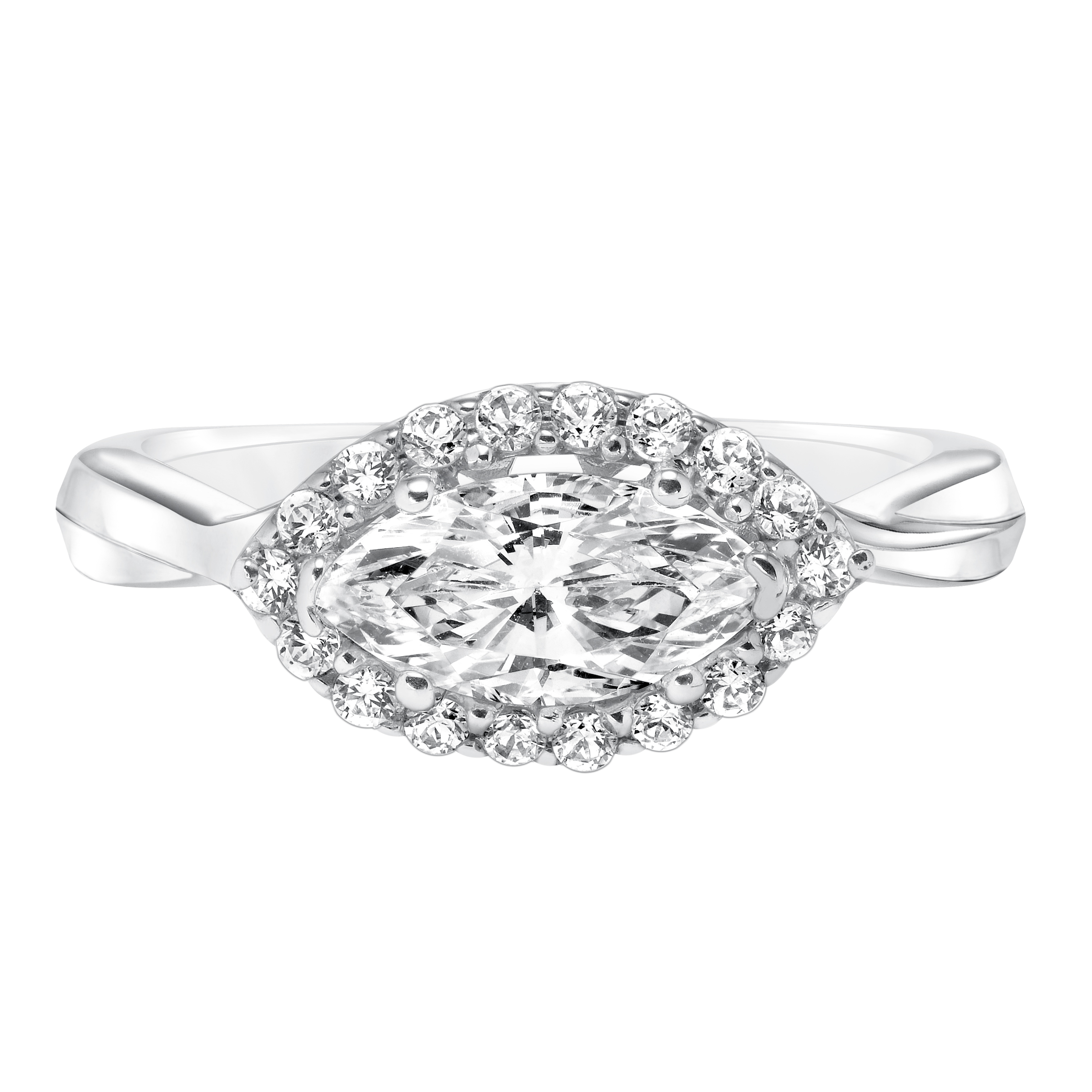 Product: East/West Diamond Halo with Twisted Shank Engagement Ring