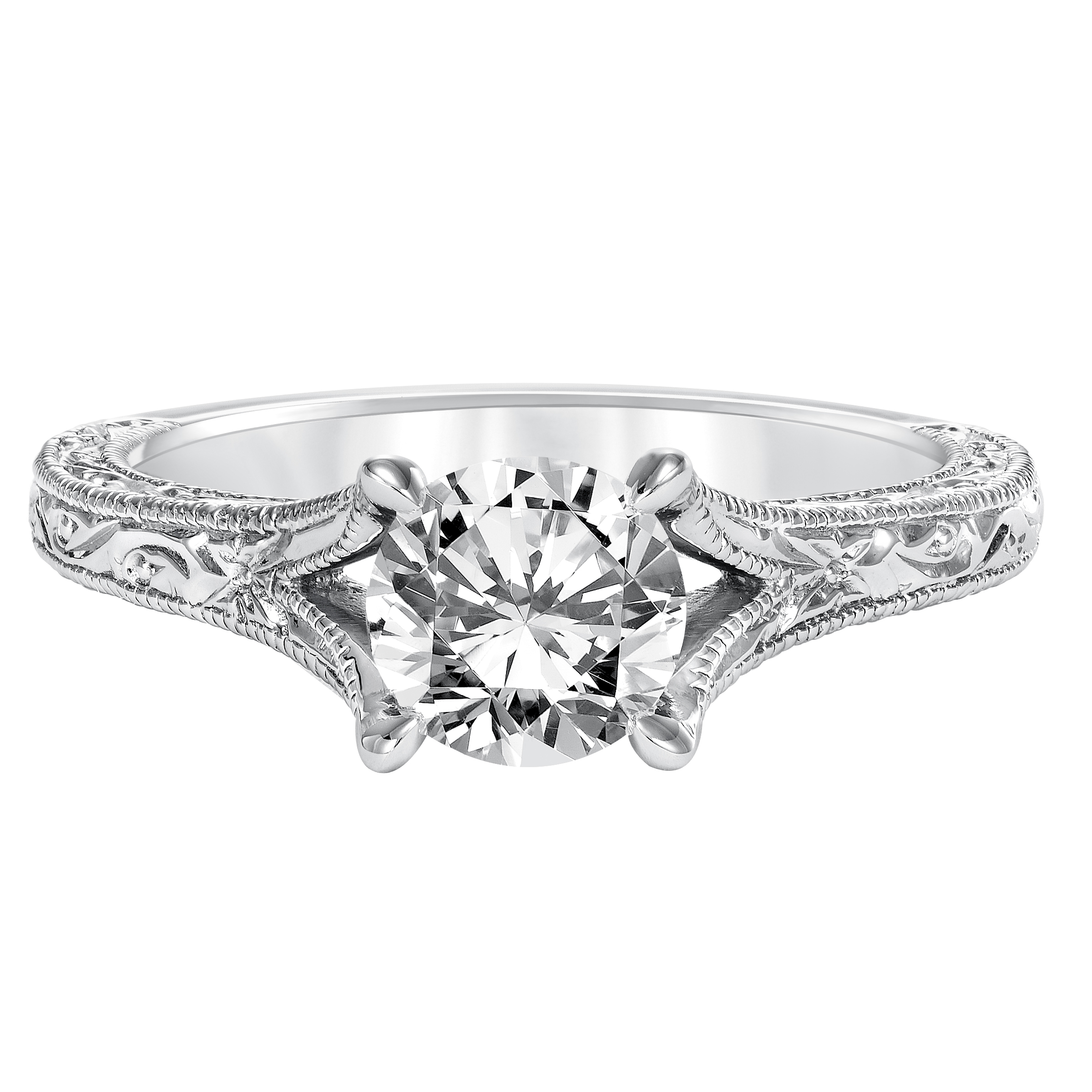 Diamond Prong Set Engraved Milgrain Split Shank Engagement Ring Diamond Prong Set Engraved Milgrain Split Shank Engagement Ring Inquire About This Piece Call Us: (916) 474-4359 Get Directions