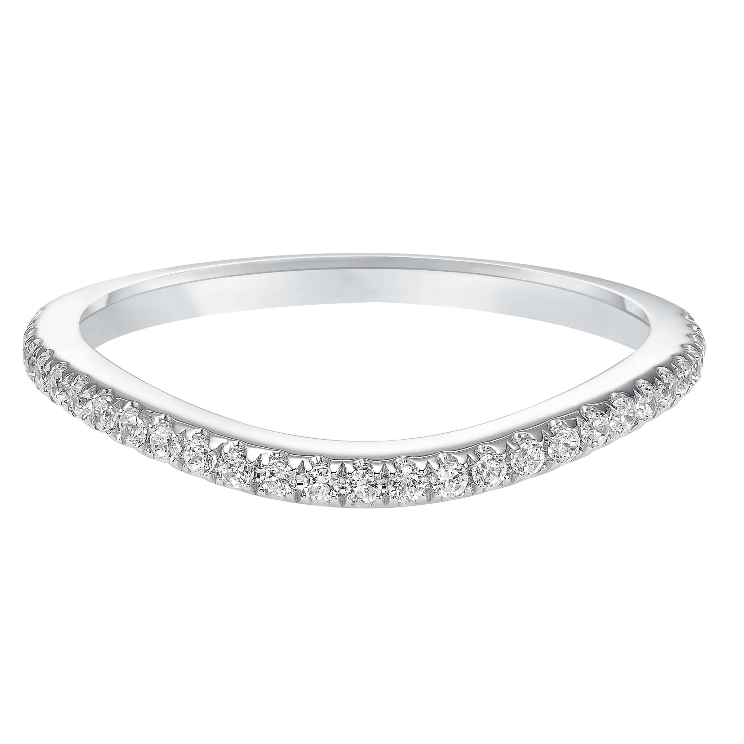 Wedding band with pave set, round diamonds and curved design to fit flush with matching engagement ring. Wedding band with pave set, round diamonds and curved design to fit flush with matching engagement ring. Inquire About This Piece Call Us: (916) 474-4359 Get Directions