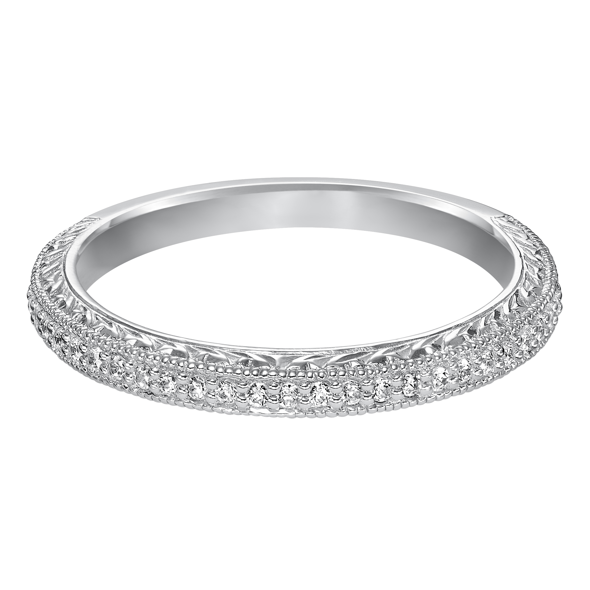 Product: Wedding band with bead set, round diamonds, engraving and milgrain.