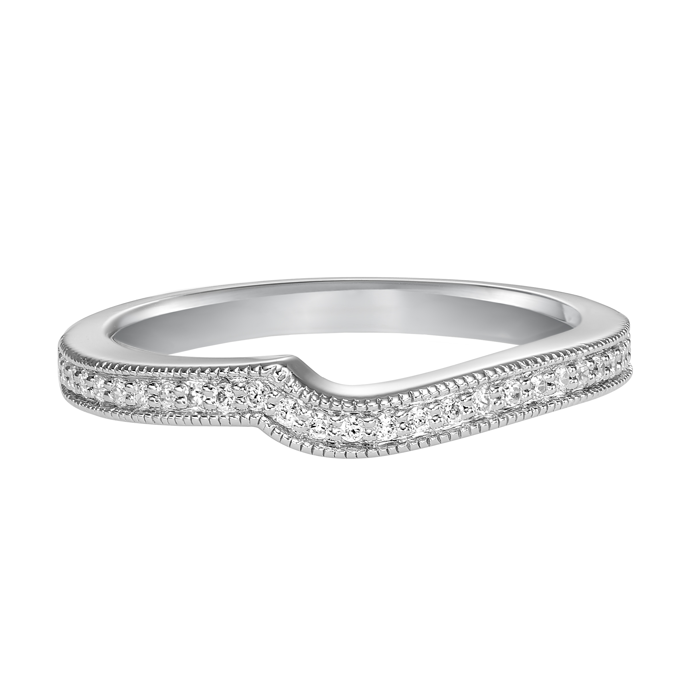 Wedding band with round diamonds and milgrain designed to fit flush with matching engagement ring. Wedding band with round diamonds and milgrain designed to fit flush with matching engagement ring. Inquire About This Piece Call Us: (916) 474-4359 Get Directions