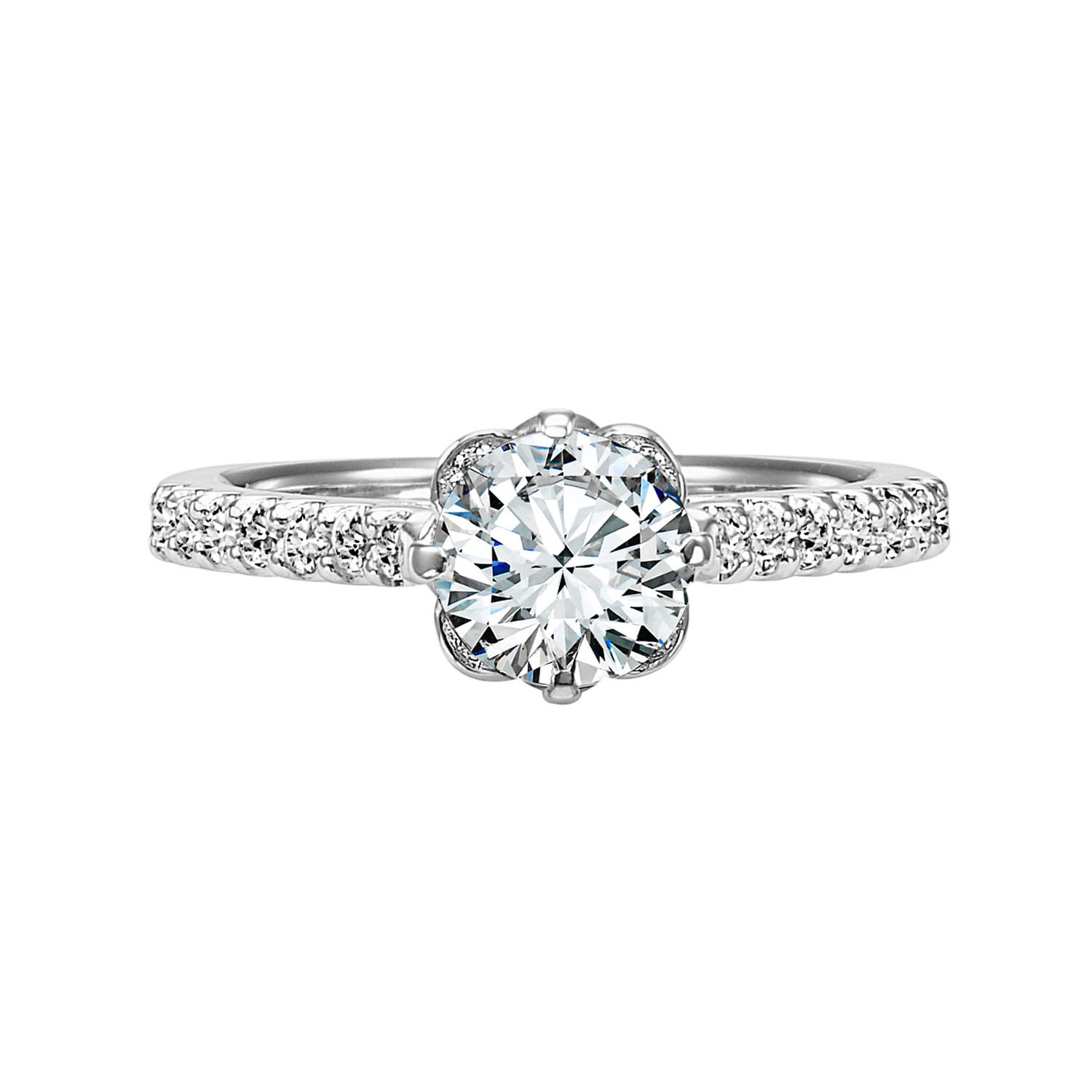Romantic and enchanting, this engagement ring features a beautiful petite diamond crown accentuating thr center stone and diamond shared prong band Romantic and enchanting, this engagement ring features a beautiful petite diamond crown accentuating thr center stone and diamond shared prong band Inquire About This Piece Call Us: (916) 474-4359 Get Directions
