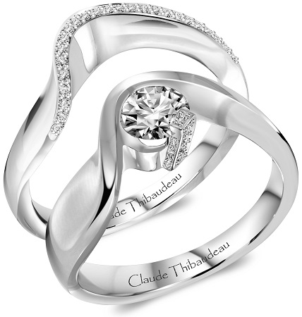 100571 Claude Thibaudeau 18k White Gold Band Features .07twt Round Brilliant Cut White Diamonds. (Matching Engagement Ring:100572) Inquire About This Piece Call Us: (916) 474-4359 Get Directions