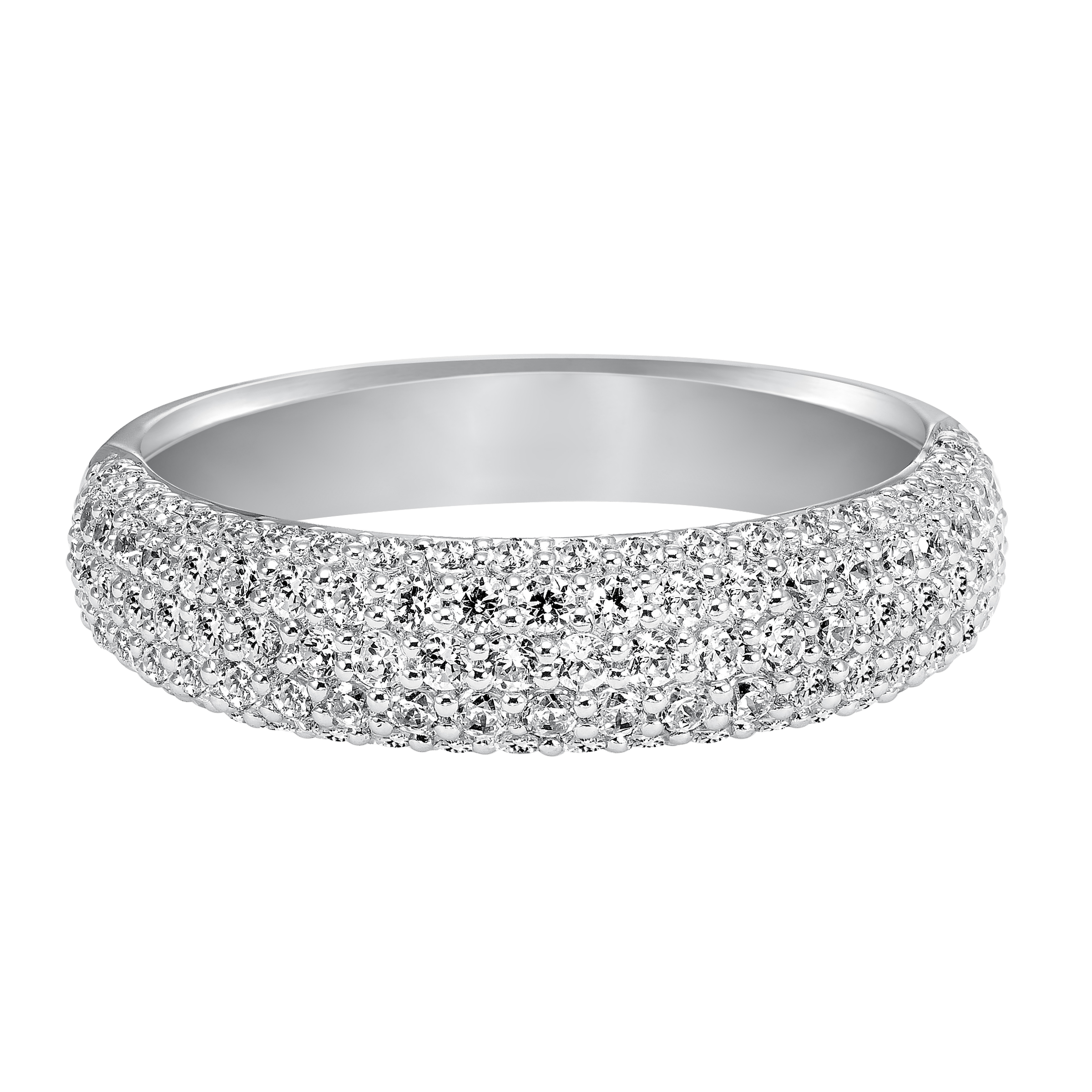 Product: Wedding band with multi-row, round, bead set diamonds.