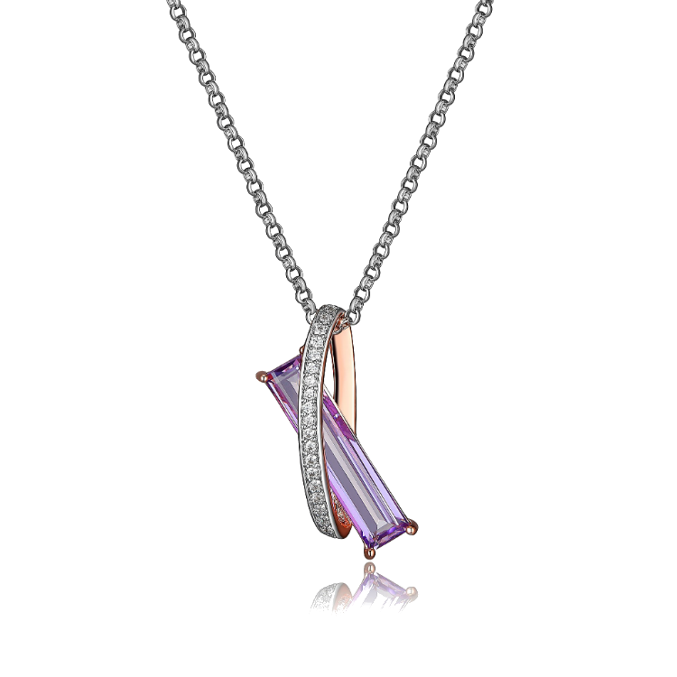 Silver and plated rose gold necklace with CZ’s and a large amethyst baguette