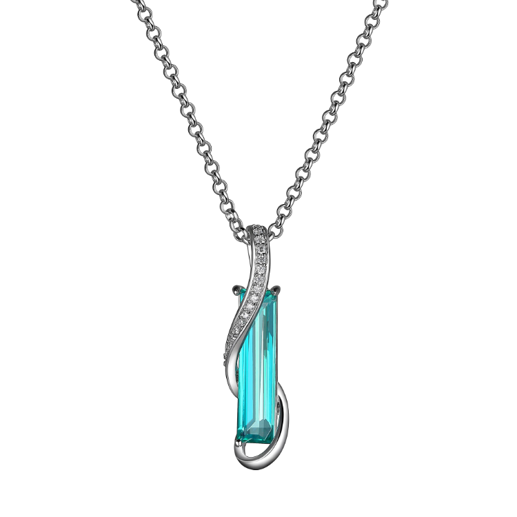 Silver Necklace with a row of crossing over CZ’s and a large green quarts baguette.