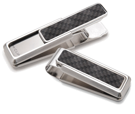 This is our most popular line of money clips, made from super durable solid stainless steel component parts and ultra cool carbon fiber and enamel inlays. Personalize with initials or logos to create a great gift for any occasion. Handmade from start to finish, this money clip is made with the highest precision and care.