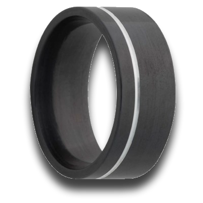 Flat Zirconium band, all high polish with an offset decorative groove.