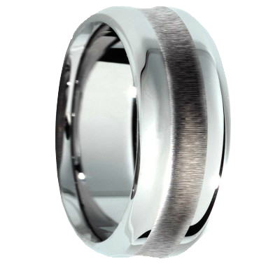Beveled edge Tungsten band, all high polish with a textured concave center.