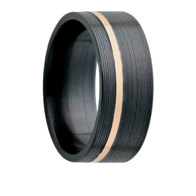 Flat Zirconium band, machine finish with 1mm 14k rose gold inlay.