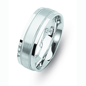 100307 18k White Gold 6MM Mens Wedding Band with Brushed Center and Milgrain Detail. $995 Drop a hint DROP A HINT Name Your Partners Name Phone Your Partners Email Email Your Hint 100307 Designed by: https://sanjewel6.ituldev.com/product/?id=747 Your Message Enter this code: