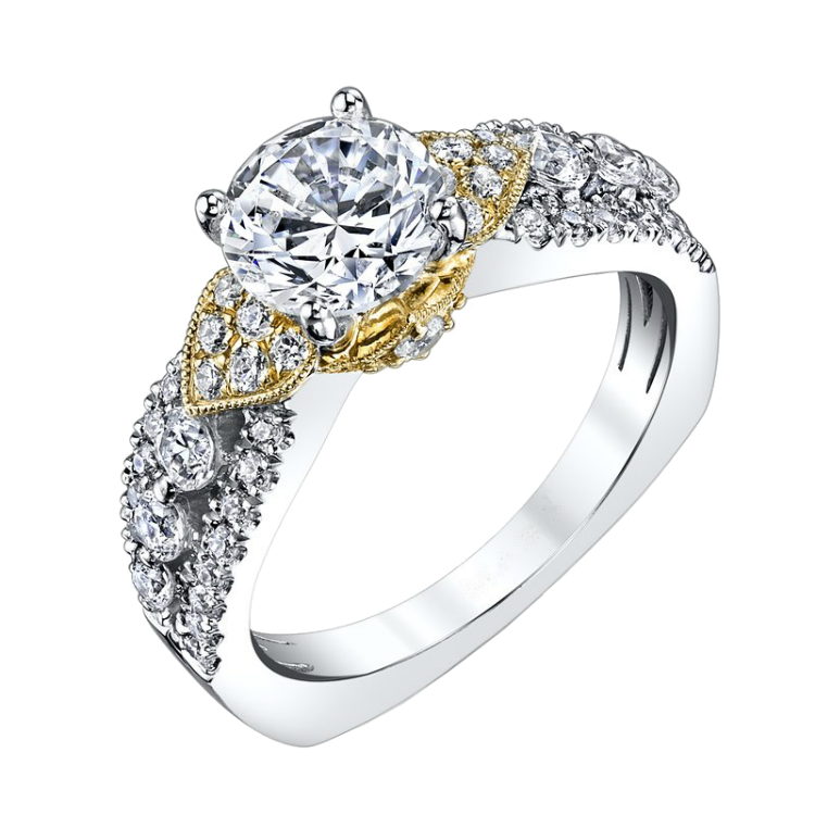 14kt white/yellow gold semi-mounting featuring 0.72ct round brilliant cut diamonds