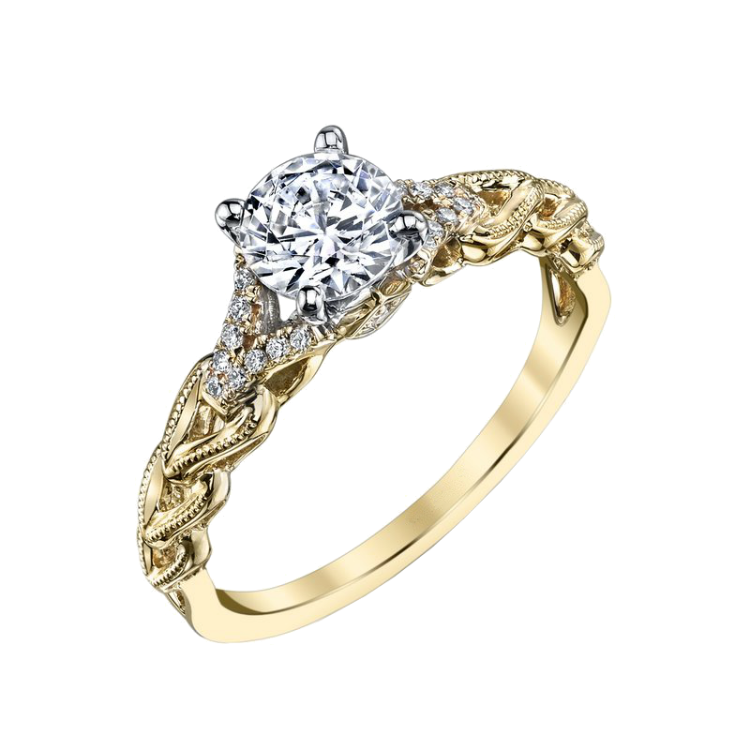 14kt yellow gold semi-mounting featuring 0.12ct round brilliant cut diamonds