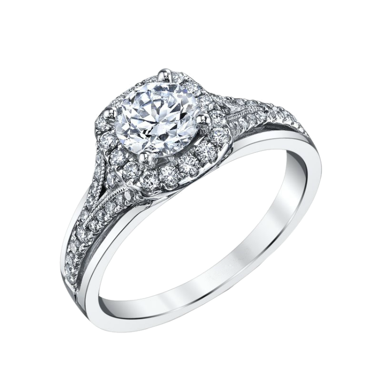 14kt white gold semi-mounting featuring 0.37ct round brilliant cut diamonds.