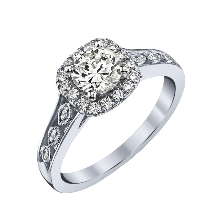 14kt white gold semi-mounting featuring 0.24ct round brilliant cut diamonds