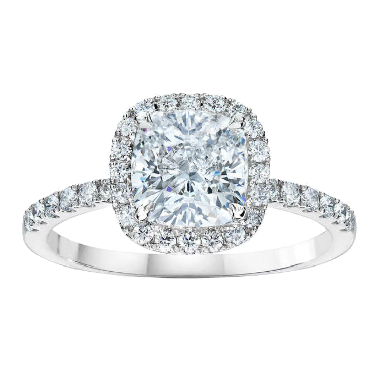 18K white gold halo mounting featuring .35cts diamonds.
