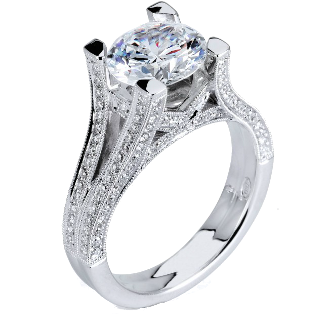 18K white gold engagement ring with 0.62cts of diamonds set along almost every surface to make this beautiful ring shame from any angle.