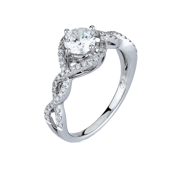 18K gold infinity style engagement ring featuring 0.28cts of round brillant cut diamonds.