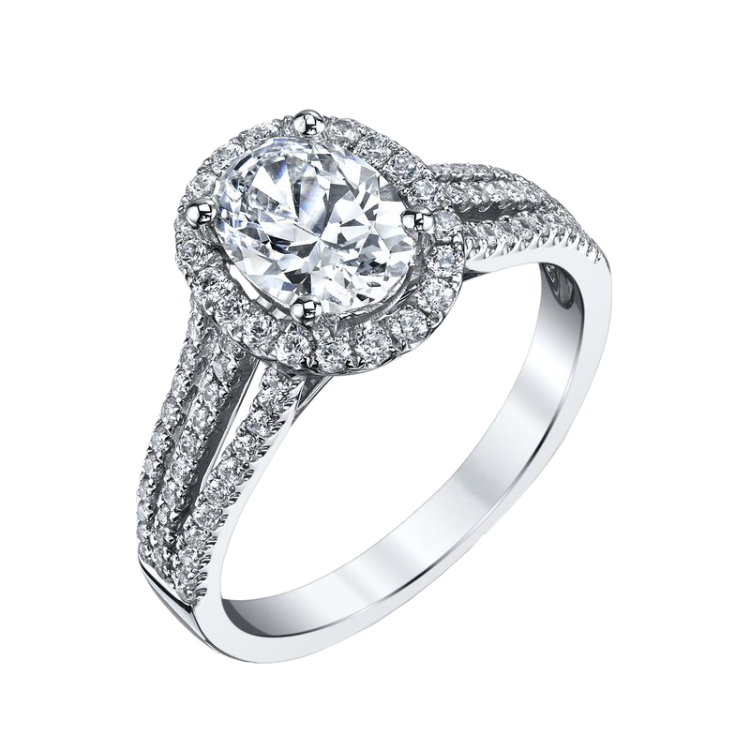 Embellished triple row oval halo engagement ring, gives you both a petite design with big look.