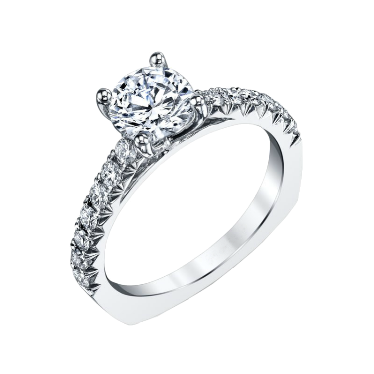 Simple elegant engagement ring with a row of diamonds totaling .50cts set in french cut pave.