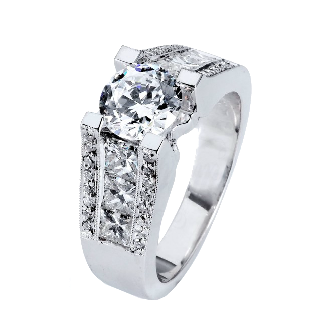 18K white gold ring with 0.18CT round brilliant diamonds and 1.17CT of sparkling princess cut diamonds