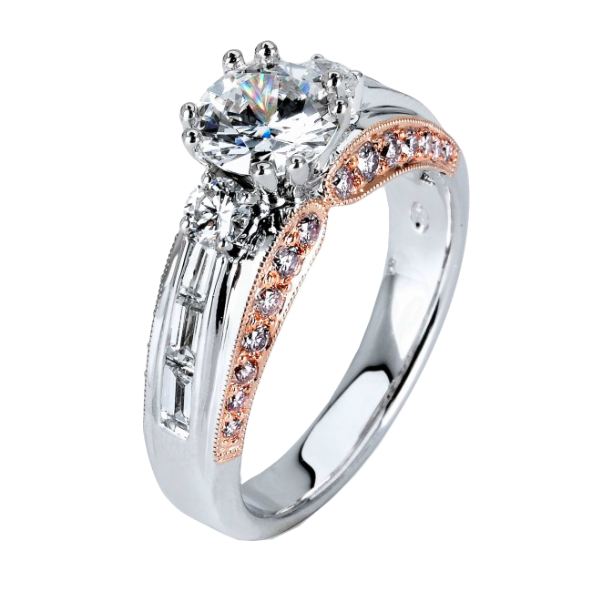 18K white and rose gold engagement ring with beautiful white and pale pink diamonds.