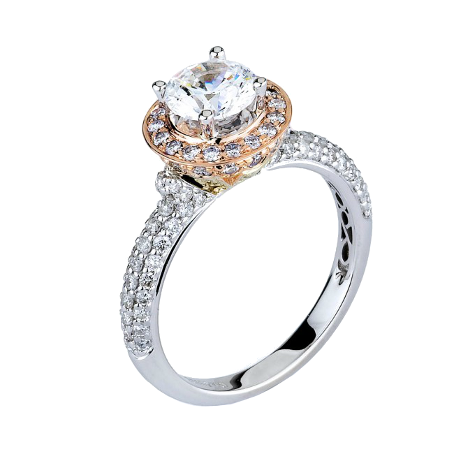 18K white, yellow and rose gold set with white pink and yellow diamonds.