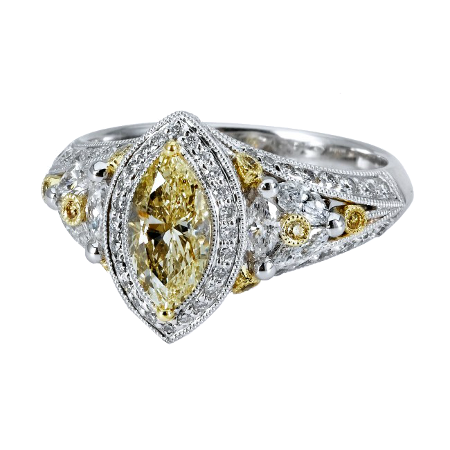 18K White and yellow gold diamond engagement ring with canary and white diamonds.
