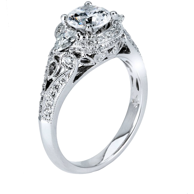18K white gold engagement ring with glittering pear cut and gorgeous round brilliant cut diamonds.