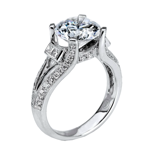 18K white gold and diamond engagement with princess cut and round brilliant cut diamonds
