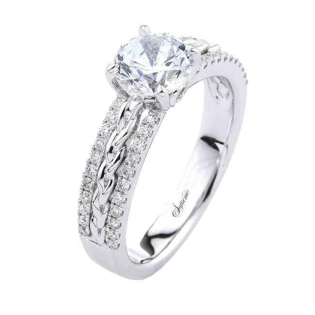 18K white gold engagement ring with two rows of diamonds resounding a twisted design