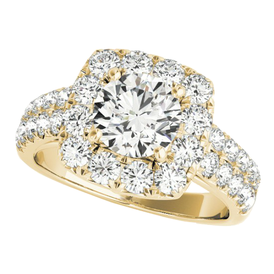 18K yellow gold halo engagement ring with 2 rows of sparkling diamonds