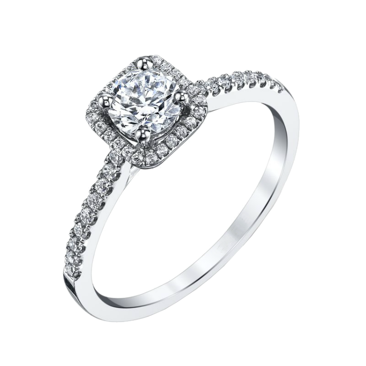 This 18k white gold micro pave semi-mount contains .21twt round brilliant cuts. The center diamond is surrounded by a beautiful halo of round brilliant cut diamonds.