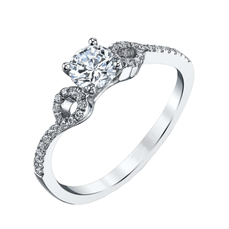 This elegant 18k white gold engagement ring features .16twt VS-G round brilliant cut white diamonds.