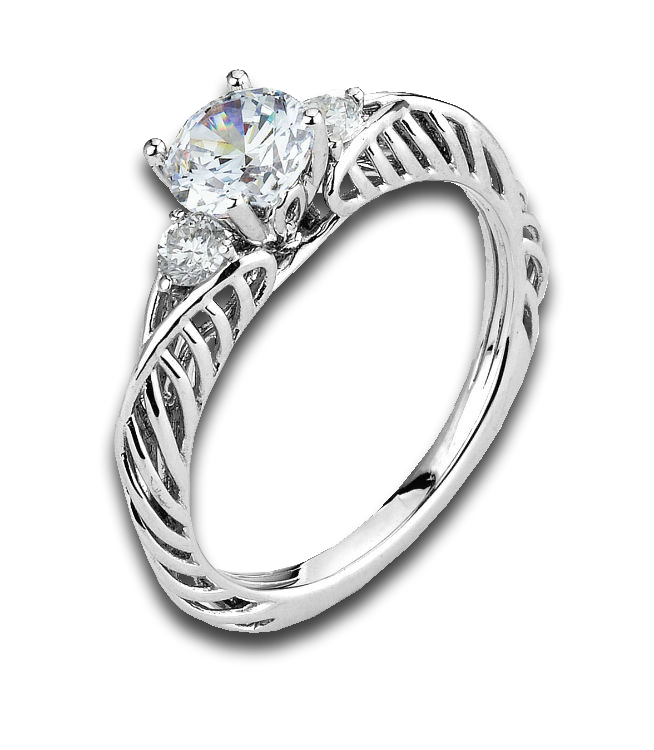 Unique 18K white gold ad diamond designer three stone semi-mount engagement ring. with a striped cut out design it is both beautiful and well designed.