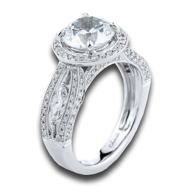 18k white gold and diamond semi-mount engagement ring, this ring is outstanding, with a total of 1.02cts of diamonds of G color and VS quality, each hand set to match the diamond next to the it is a work of both art and craft.