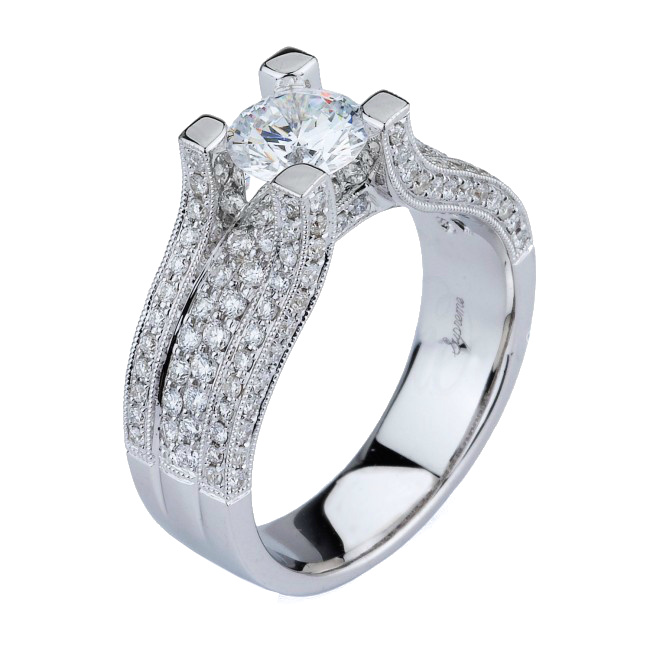 18K diamond engagement ring with beautiful mill-gran and bead and bright cut setting of 0.78cts of round brilliant cut diamonds.