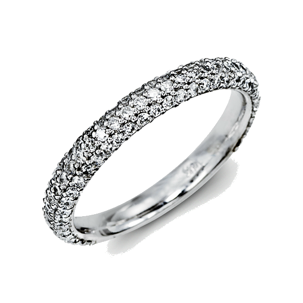 This 18k white gold pave diamond band contains .34twt white diamonds.