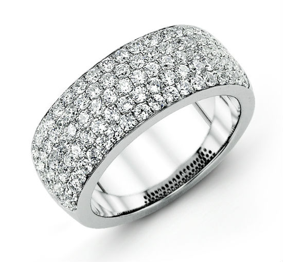 18k white gold pave diamond fashion ring. This amazing diamond ring features 1.35cts of premium cut round brilliant white diamonds all VS clarity and G color. Set in 18kwg this ring is sure to be a knock out.