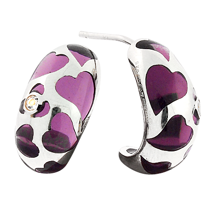 Romance and Color prove to be a marriage made in Jeweled Heaven with the Sterling Silver COQUETTE earring by Angélique de Paris. Randomly placed hearts mingle with Genuine White Topaz gemstones creating a decorative ode to AMOUR! Embellished detailing continues along the side and back frame of this unique jewel that you will want to match with all of your Angélique de Paris bracelets.
