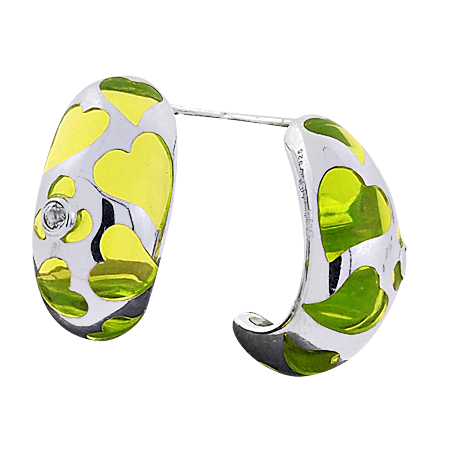 Romance and Color prove to be a marriage made in Jeweled Heaven with the Sterling Silver COQUETTE earring by Angélique de Paris. Randomly placed hearts mingle with Genuine White Topaz gemstones creating a decorative ode to AMOUR! Embellished detailing continues along the side and back frame of this unique jewel that you will want to match with all of your Angélique de Paris bracelets.