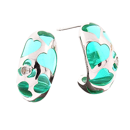 Romance and Color prove to be a marriage made in Jeweled Heaven with the Sterling Silver COQUETTE earring by Angélique de Paris. Randomly placed hearts mingle with Genuine White Topaz gemstones creating a decorative ode to AMOUR! Embellished detailing continues along the side and back frame of this unique jewel that you will want to match with all of your Angélique de Paris bracelets.