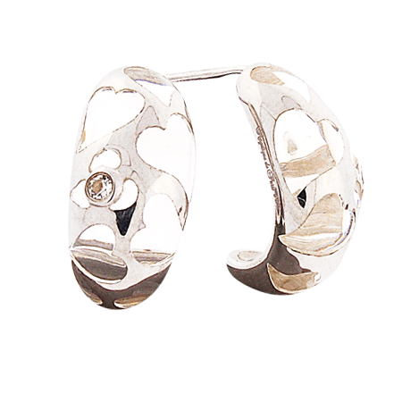 Romance and Color prove to be a marriage made in Jeweled Heaven with the Sterling Silver COQUETTE earring by Angélique de Paris. Randomly placed hearts mingle with Genuine White Topaz gemstones creating a decorative ode to AMOUR! Embellished detailing continues along the side and back frame of this unique jewel that you will want to match with all of your Angélique de Paris bracelets.