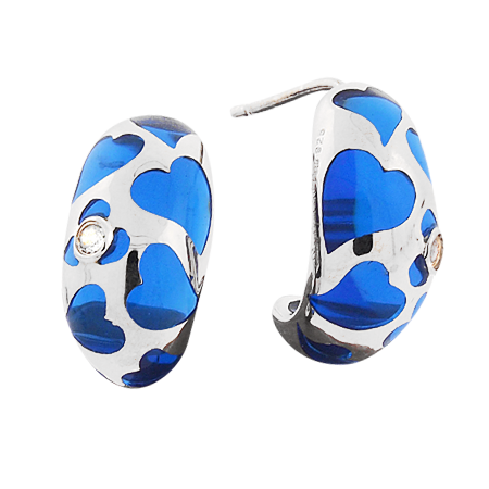 Romance and Color prove to be a marriage made in Jeweled Heaven with the Sterling Silver COQUETTE earring by Angélique de Paris. Randomly placed hearts mingle with Genuine White Topaz gemstones creating a decorative ode to AMOUR! Embellished detailing continues along the side and back frame of this unique jewel that you will want to match with all of your Angélique de Paris bracelets.