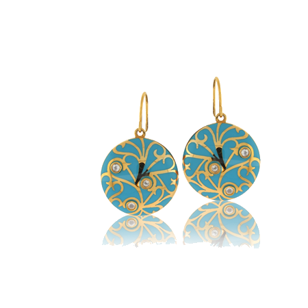 Dashing Renaissance scrollwork in Sterling Silver adorned with Genuine White Topaz Gemstones make up the one and only CONTESSA dangle earring. Rich, luminous or opaque resin appears to illuminate with its translucence. Decorative detailing continues along the side and back frame. A definitive jewel by Angélique de Paris.