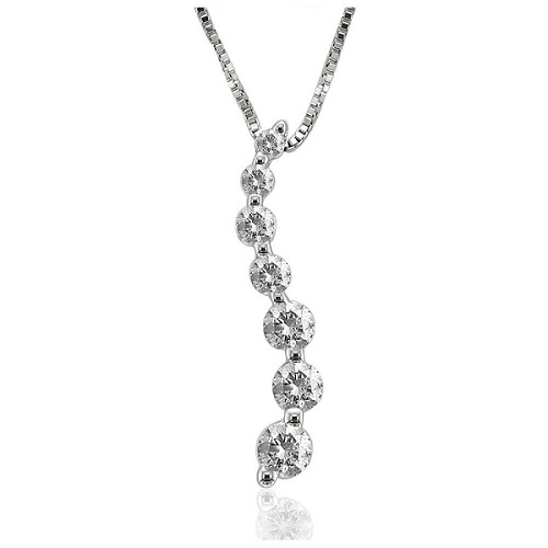 Representing the journey of love this gorgeous Journey pendant is set in 14k white gold and features .25twt round brilliant cut white diamonds.