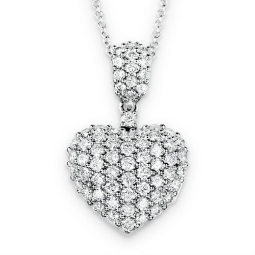 This dazzling 18k white gold heart pendant features 1.42cts of round brilliant cut white diamonds all individually prong set for maximum sparkle.