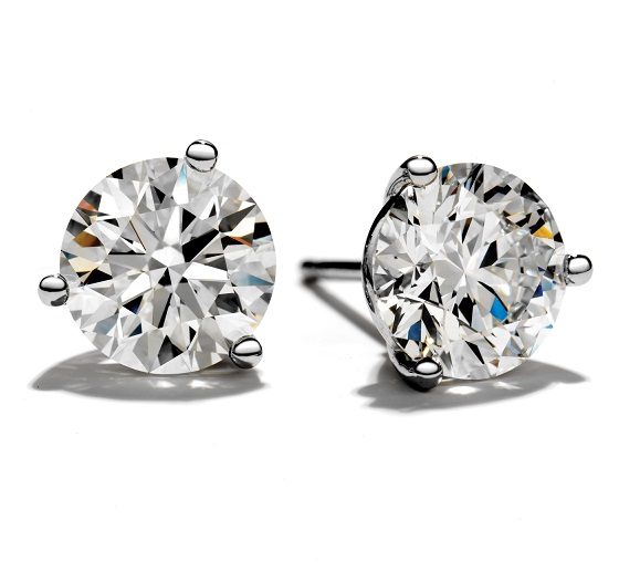 Round diamond stud earrings set in your choice of 14k or 18k gold. Set in a three prong martini setting.