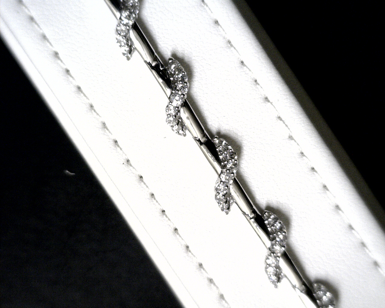 This unique diamond bracelet is crafted in 18k white gold and features 1.80twt round brilliant cut white diamonds.