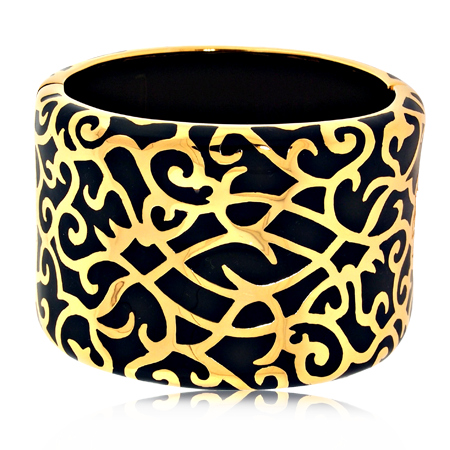Go big and go bold with a substantial piece of designer jewelry by Angélique de Paris. The Demi Jezebe cuff in luminous and glossy resin peeks out from genuine .925 Sterling Silver and a vermeil overlay that is meticulously polished to perfection. The bracelet is sleek, smooth and pure luxury.
